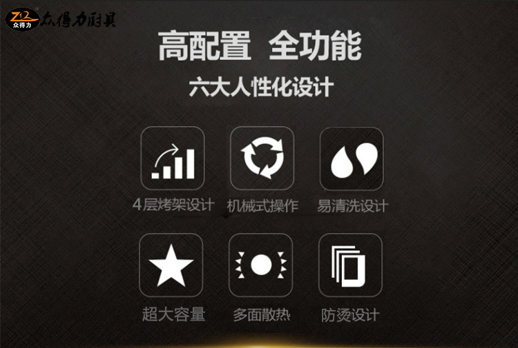 眾得力廚具為您提供多功能烤箱系列產(chǎn)品,適用于家用商用的電烤箱,外形美觀大方,4層烤箱設(shè)計,大容量,烘焙面包等。